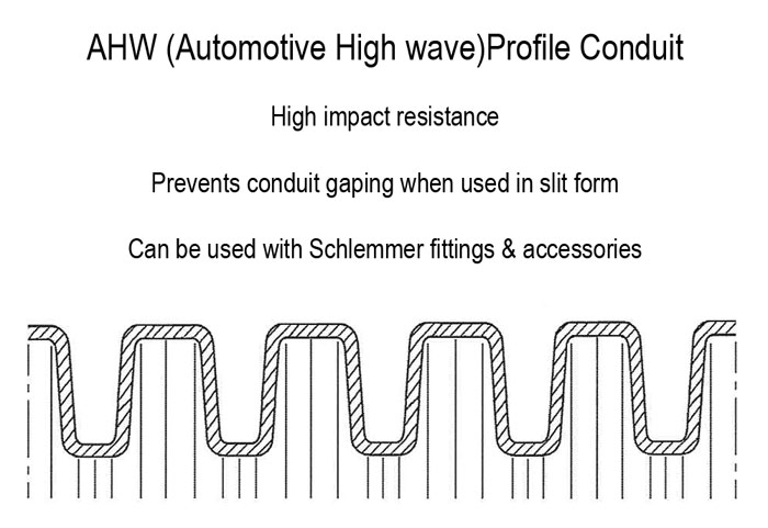 A flexible conduit manufactured from PPBS material, suitable for harness protection on a variety of vehicle applications,but specifically the vehicle interior, chassis and body sections. In slit form this product does not gape open to expose wires when bent back on itself.