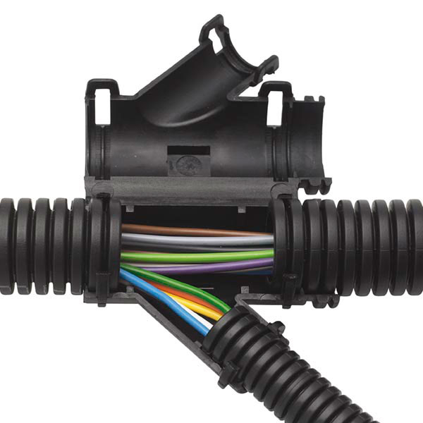 Suitable for use with all types of Schlemmer conduit, these fittings are designed to fit externally and lock together to provide protection to a 'Y' junction on a harness.